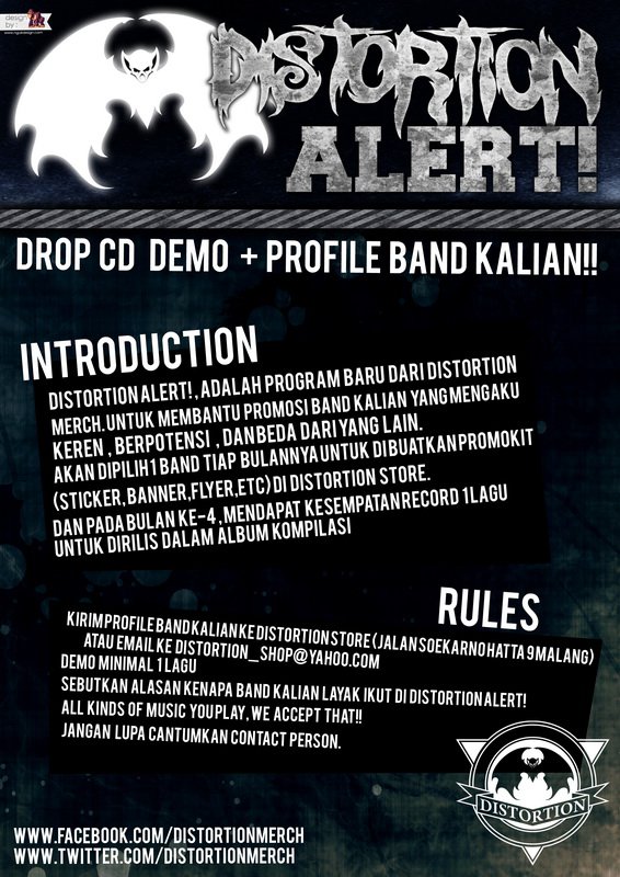 Buat kalian yang bandnya ingin dibuatkan Promotion Kit untuk bahan promosi, kalian bisa mengikuti kesempatan ini. Cukup dengan mengirimkan profile + demo band kalian ke alamat tersebut. Akan dipilih 1 band setiap bulannya. Dan pada bulan ke-4 akan mendapatkan kesempatan untuk Recording 1 lagu dan akan dirilis dalam album kompilasi